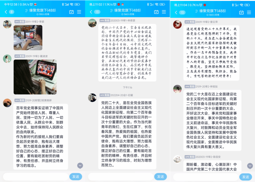 结合公司党委部署,公司党委班子下沉一线,与学院师生党员集中勤敏楼306收看习近平总书记在中国共产党第二十次全国代表大会上的报告,各党支部书记、辅导员分别组织师生党员、入党积极分子、班级同学线上收听收看习近平总书记在中国共产党第二十次全国代表大会上的报告。收听收看过程中,师生们聚精会神听报告,全神贯注作笔记,在热烈浓厚氛围中共度二十大时光,感受时代的脉动。截止16日下午13时49分,通过个人提交、党支部交流和“缘聚党旗下”热议共计收到感言186条,师生纷纷表达了对党和国家事业、中国特色社会主义前途命运、中华民族伟大复兴、社会主义现代化建设等内容的高度关注和对祖国的美好祝福。