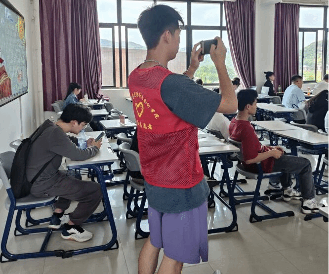 活动中,答辩场内的志愿者们提前布置答辩场地,指导答辩员工填写相关材料,负责记录答辩问题及员工回答情况,汇总、计算、审核答辩成绩,做好答辩组老师与答辩员工间的衔接工作,全方位保障了答辩活动的顺利进行。此外,答辩场外还设立了党员志愿服务流动岗,有序引导答辩者进退场,并维护好场外的秩序。同时,志愿者们持续为答辩者提供咨询服务、心理支持,缓解他们的紧张情绪,帮助他们在答辩中展现最佳状态。在志愿者们的共同努力下,为期两天的答辩工作顺利完成,获得师生一致好评。