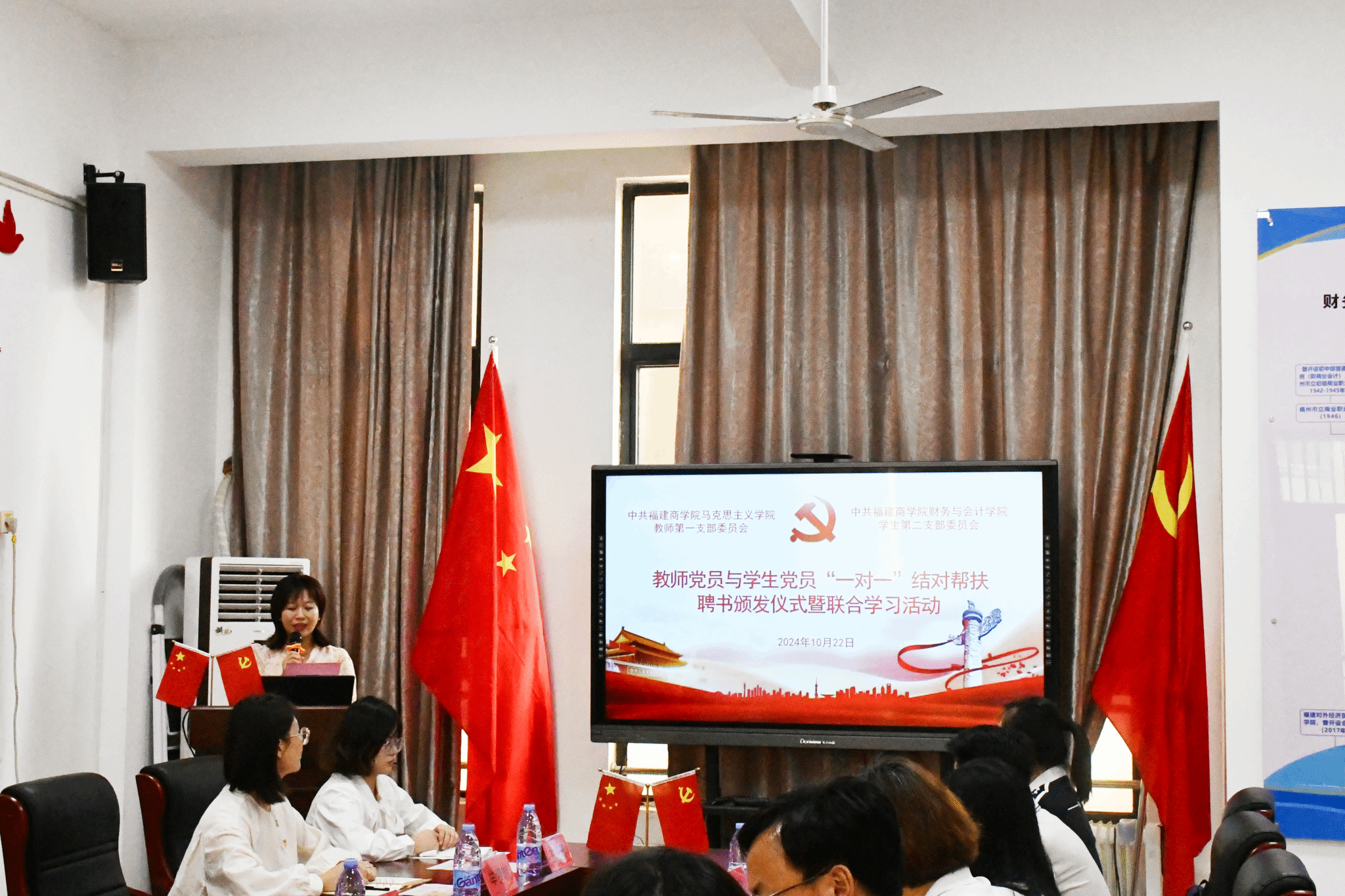 为深入学习贯彻党的二十届三中全会精神、习近平总书记在全国教育大会上的重要讲话精神及习近平总书记在福建考察时的重要讲话精神,充分发挥师生党员先锋模范作用,营造师生党员互学互助、共同成长的良好氛围,10月22日,马克思主义学院教师第一党支部教师党员与ylzzcom永利总站员工第二党支部员工党员“一对一”结对帮扶聘书颁发仪式暨联合学习活动于勤敏楼210会议室顺利举行。