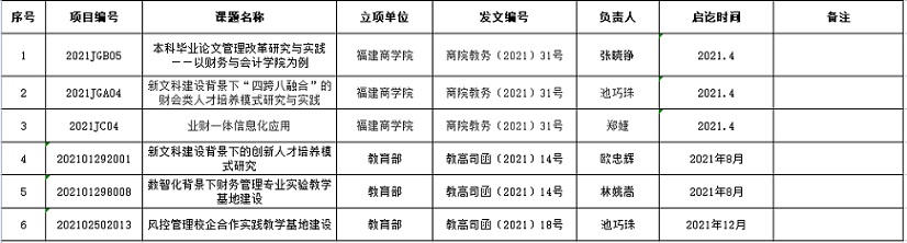 公司2021年教改课题一览表