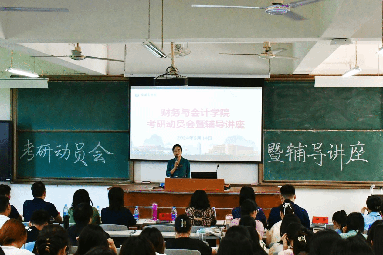 梁小红经理介绍了近年来学院员工考研的基本情况,并以考研需持有决心、葆有恒心、坚定信心,鼓励公司学子在考研路上奋力拼搏。林琼馆长对财会学子的考研热情给予肯定,并表示图书馆会持续为商院学子提供优质的学习资源,希望大家在追梦途中永远充满激情与动力。李跃飞老师从“本科生面临的竞争形势”、“考研成功上岸的公式”、“财会类择校四步法”、“硕士研究生跨考难度分析”等四个方面,为财会学子带来了一场生动有趣的考研辅导讲座