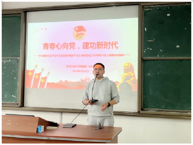 为学习贯彻习近平总书记在庆祝中国共产主义青年团成立100周年大会上的重要讲话精神,认真学习福建省学习贯彻习近平总书记在庆祝中国共产主义青年团成立100周年大会上的重要讲话精神座谈会精神,学院团委组织全体团干开展团委书记讲团课活动。