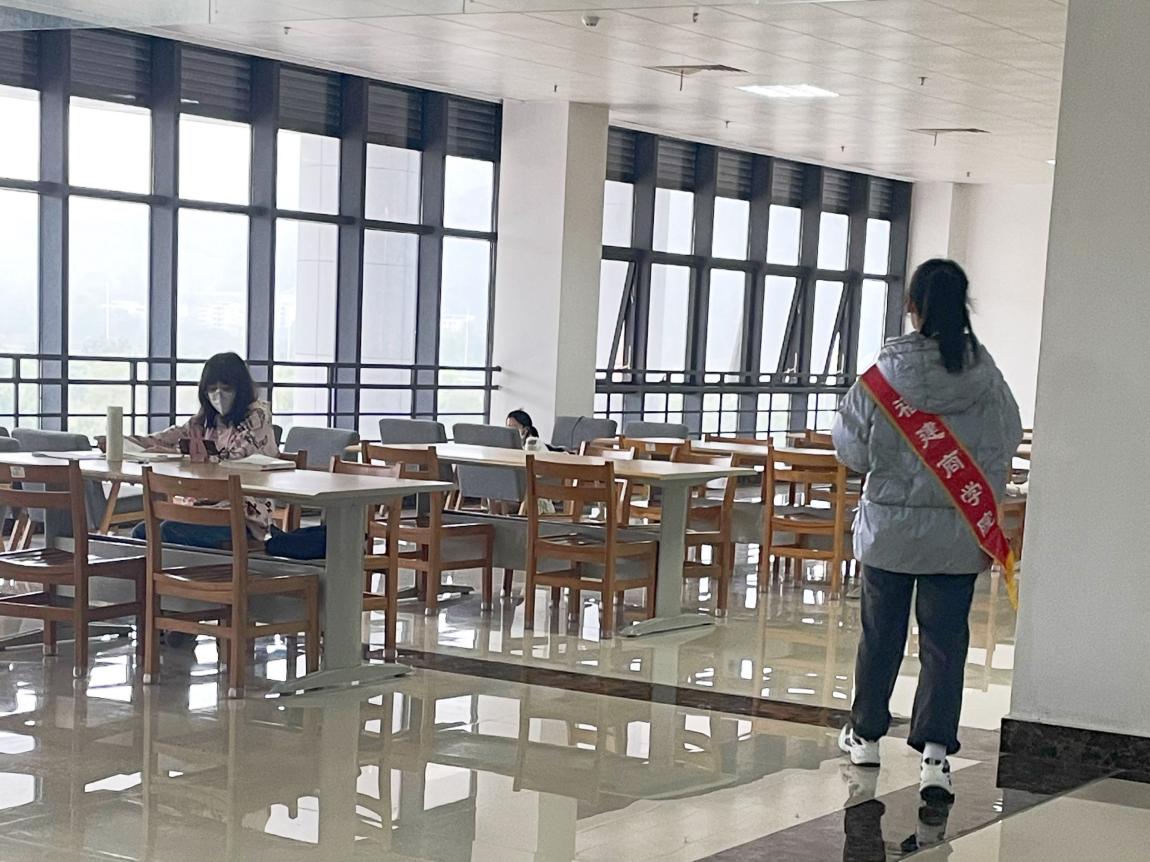 服务内容包括协助图书馆管理人员做好相关工作,积极为同学们营造安全和整洁的学习环境等,在疫情防控的特殊时期为同学们提供舒适的学习环境。在志愿活动开始前,同学们到达各自的岗位做好工作准备,后在相关人员的指导下,以认真负责的饱满精神态度投入到自己的工作中去。通过本次疫情防控志愿活动,青年团员进一步把初心贯彻到了行动上,把使命落实在了岗位上,充分展现了青年团员冲锋在前、勇挑重担、有担当、敢作为的优良精神风貌。