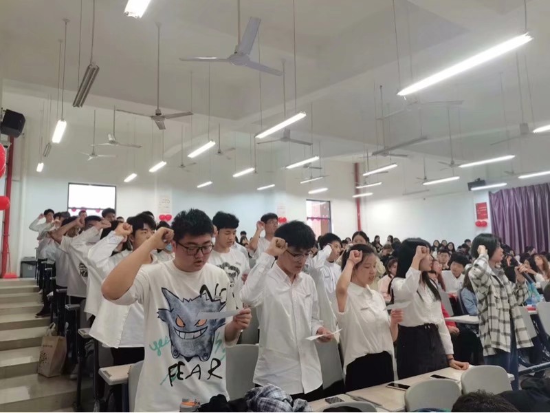 开幕式一开始表演的古风舞蹈将观众们带入了如诗如画般的意境中,同时展现出中华传统文化的源远流长。紧接着,2019级财务管理专业的薛睿颖同学和张佳欣同学带来的朗诵——《红船的方向》更是铿锵有力、气势磅礴!在这之后,公司党委洪连鸿书记上台发表重要讲话,洪书记向我们大家提出了殷切的期望,强调了读书的意义与内涵。随着洪书记和ylzzcom永利总站梁小红经理的揭幕,在全场热烈的掌声中,读书节活动正式拉开序幕。2018级审计专业的谭湘同学和2020财务管理专业的陈俊强同学手写校训“明德,诚信,勤敏,自强”可谓颜筋柳骨,笔走龙蛇。在好书分享环节,同学们渊博的知识、大方得体的表达,体现出我们财会学子 “腹有诗书气自华”。在紧张刺激的飞花令环节中,一来一回的对诗场景刺激着选手与观众们的神经。开幕式接近尾声,班委们全体起立进行宣誓,“让阅读成为习惯,将阅读带入生活”不再是一句简单的口号,转化为同学们自觉的行动与追求,读书节开幕式取得圆满成功!