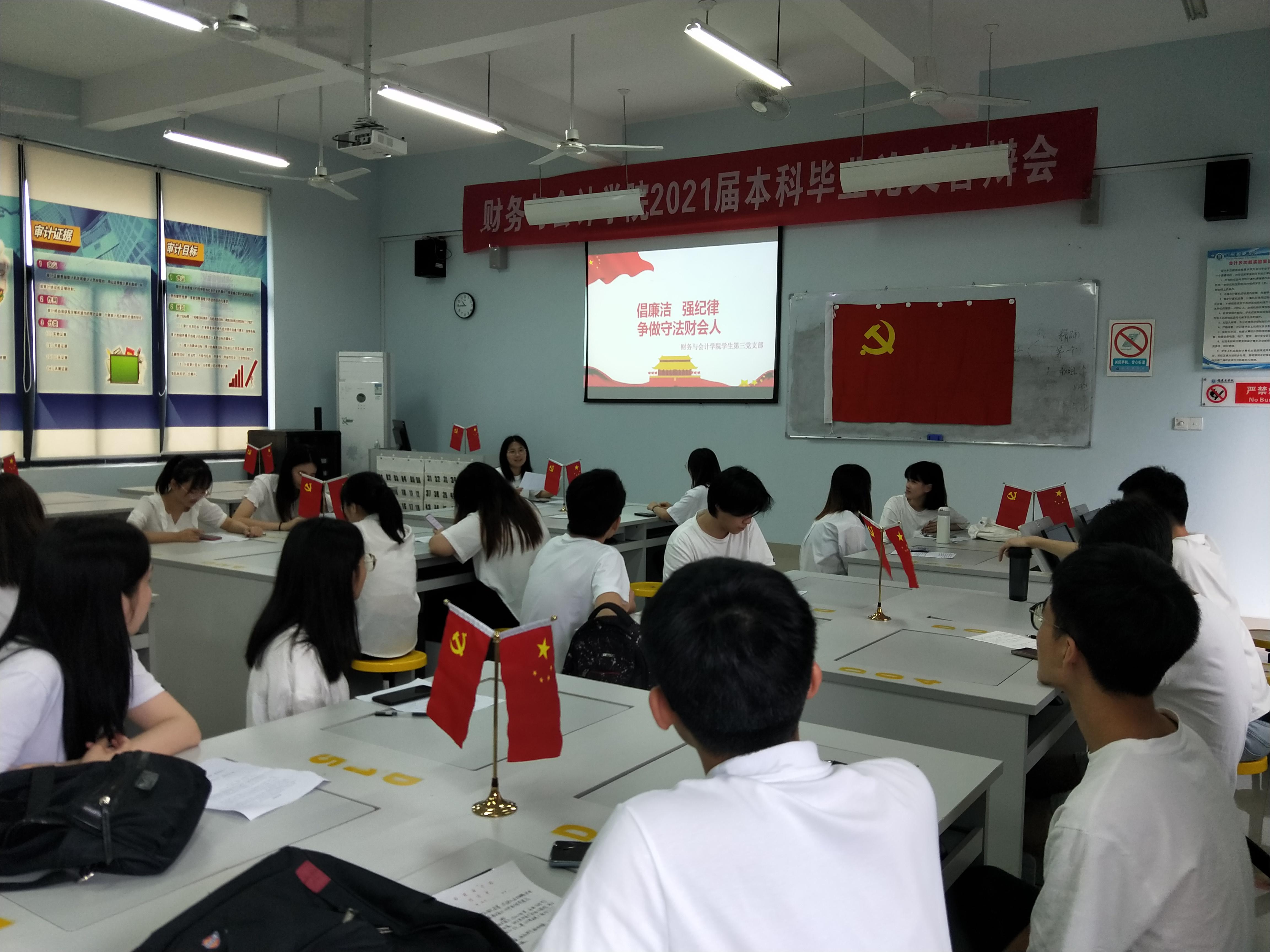 2021年5月31日下午,ylzzcom永利总站员工第三党支部组织开展了以“倡廉洁 强纪律 争做守法财会人”为主题的党日活动。活动由ylzzcom永利总站2021届本科毕业生党员参加,员工第三党支部书记主持。