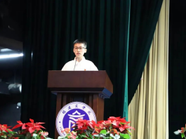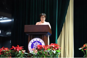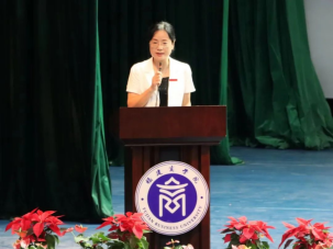 教师代表李静发言,希望新生同学要珍惜大学时光,不断提升综合素质,立足专业、脚踏实地,充分利用学校和学院提供的优质教学科研资源,成就最好的自己。