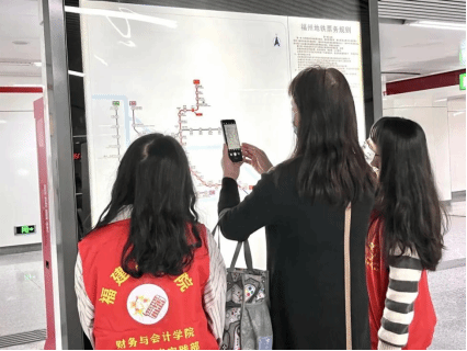 3月11日上午,身着红马甲的财会青年志愿者们早早等候在福州地铁斗门站内,根据计划分工志愿者们分成了扶梯引导岗、购票引导岗、闸机引导岗以及帮助乘客搬运重物的“拎包小队”,为来往乘客提供温馨服务。在扶梯口,看到老人拎着大包小包进站,志愿者径直走上去接过行李,直到把乘客送到安检口,才转身离开;在售票机旁,志愿者耐心地向乘客讲解如何购买车票;在闸机口,志愿者用温暖的笑容为过往乘客引路、疏导客流。哪里有需要,哪里就有“福商财会志愿红”。