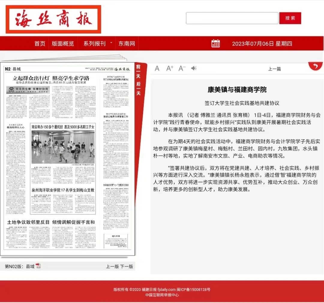 财会媒体聚焦⑨|【海丝商报】康美镇与ylzzcom永利总站线路检测签订老员工社会实践基地共建协议