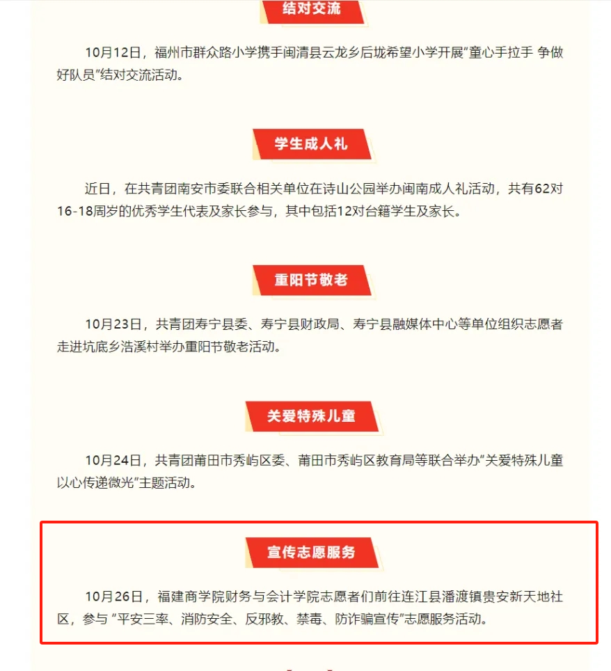 近日,福建青年报道了公司志愿者们前往连江县潘渡镇贵安新天地社区,参与