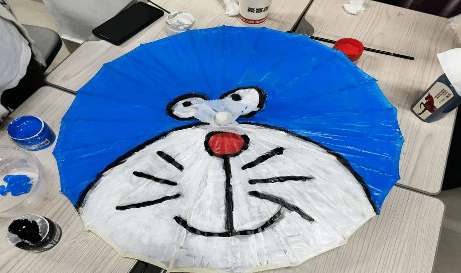 最后,各小组纷纷派代表走到台前,手持自己团队绘制的油纸伞,分享了他们与这把油纸伞的故事。一场关于油纸伞的旅程,在每位同学的心中都留下了深刻的印记。从初识油纸伞的韵味,到亲手绘制融入现代元素的伞面,再到聆听各小组代表的深情讲述,每个环节都充满了收获与感动。同学们不仅在绘画中感受到了艺术的魅力,更在传承与创新的结合中看到了传统文化的无限可能。