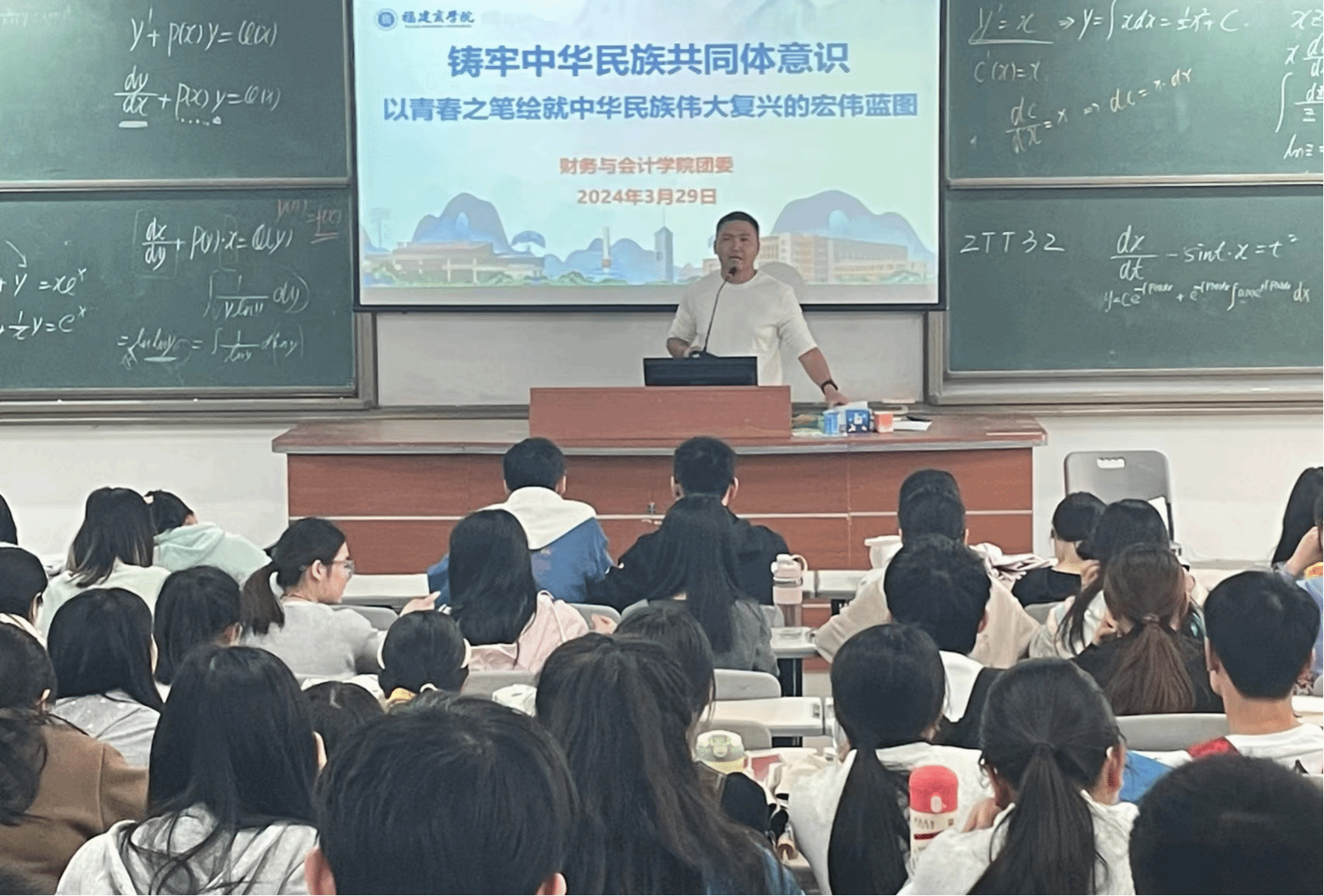 林志锋老师首先强调了铸牢中华民族共同体意识对于实现中华民族伟大复兴的重要性。他指出,中华民族是一个命运共同体,只有各族人民紧密团结、携手并进,才能共同书写中华民族伟大复兴的壮丽篇章。青年团员作为新时代的生力军,应当肩负起历史赋予的重任,不断深化对“两个确立”的政治认同、思想认同、理论认同、情感认同。接着,他结合具体案例和史实,深入解读了铸牢中华民族共同体意识的丰富内涵和实践要求。他强调,铸牢中华民族共同体意识需要青年团员们树立正确的历史观、民族观、国家观,自觉维护国家统一和民族团结;需要积极弘扬中华优秀传统文化,增强文化自信和民族自豪感;同时,还需要不断提高自身素质和能力,为推动中华民族共同体建设贡献智慧和力量。最后,他鼓励财会青年们以实际行动践行铸牢中华民族共同体意识的理念。他倡议青年团员们积极参与民族团结进步创建活动,通过志愿服务、文化交流等方式增进各民族之间的了解和友谊;同时,也要关注国家发展大局,积极投身创新创业、乡村振兴等实践活动中,为实现中华民族伟大复兴的中国梦贡献青春力量。