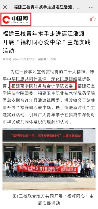 近日,中国网报道公司团委、福建江夏学院法学院团委、福建卫生职业技术学院药学院团总支联合连江县潘渡镇团委、潘渡镇社工站共同开展“福籽同心爱中华,携手奋进新时代”主题实践活动。(具体链接请点击左下方“阅读原文”)