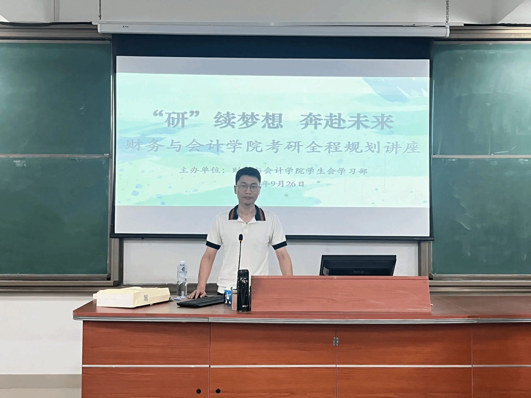 9月26日,学院于诚信楼中阶梯教室4开展“研续梦想 奔赴未来”考研全程规划讲座。施炽志老师作为主讲嘉宾,结合考研预报名推迟等最新考试动态,对院校选择、专业选择、备考策略、考试技巧等方面进行全面剖析。讲解过程风趣易懂,师生互动积极,现场氛围良好。