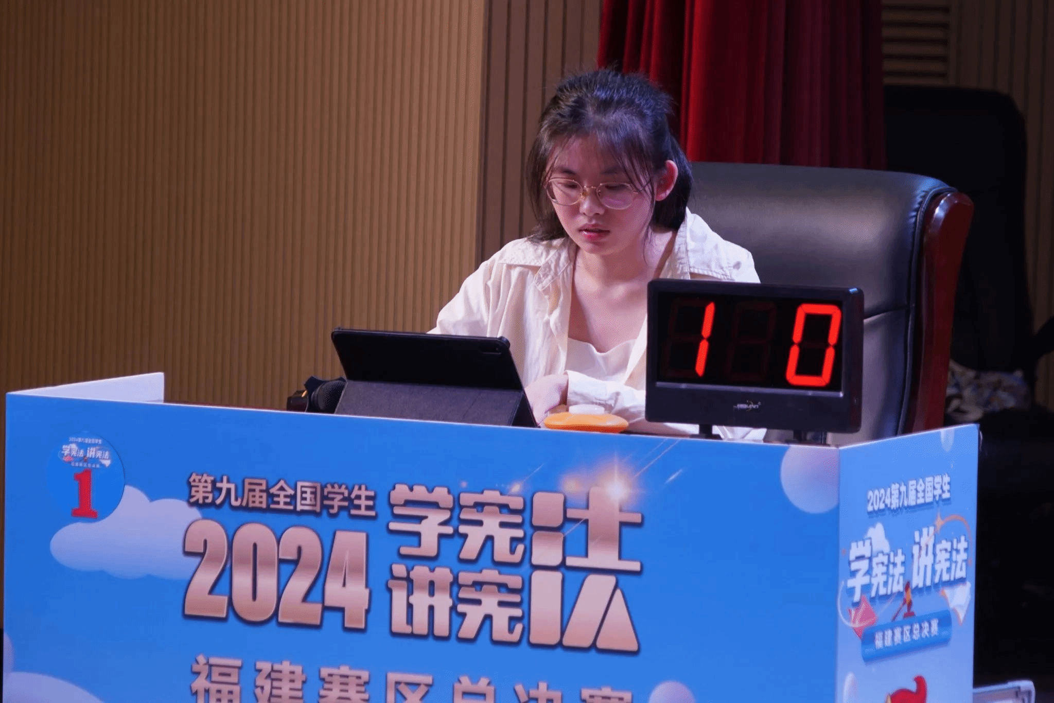 此次宪法竞赛旨在推动全省员工深入学习宪法知识,增强宪法意识,弘扬宪法精神。来自全省53所高校的选手齐聚三明,同场竞技。游爱萍同学一路过关斩将,以优异的成绩赢得了对手的尊重与评委的认可。
