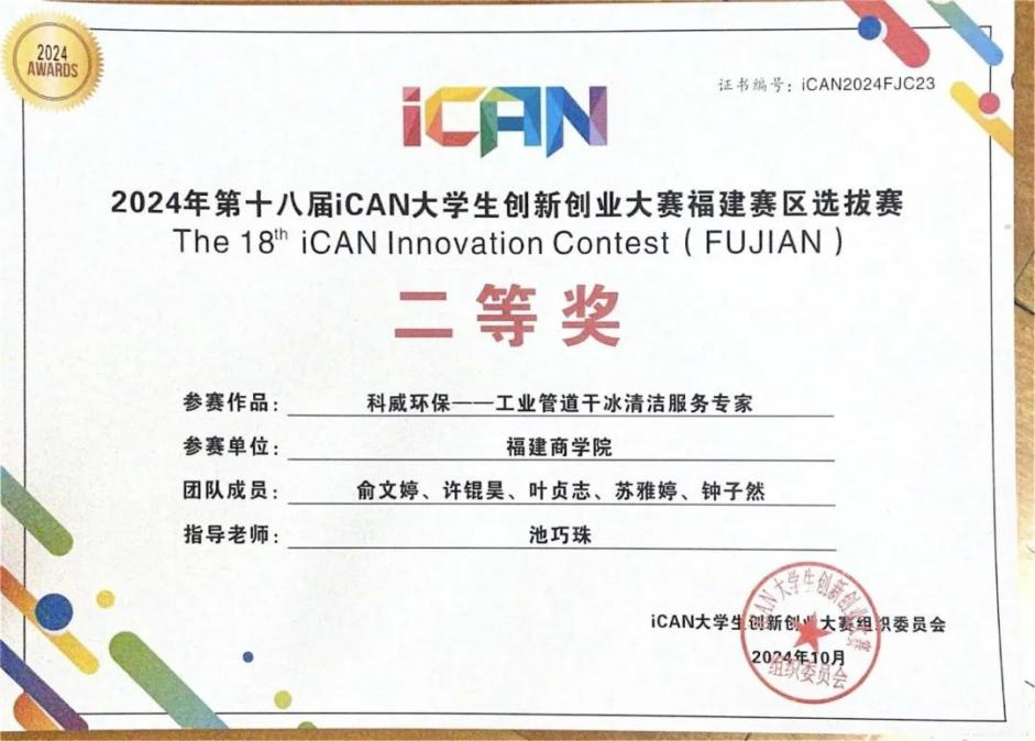 习近平总书记曾指出:“创新是引领发展的第一动力”,高校青年是创新创业的有生力量。财会学子以责任和担当积极投身于创新创业实践中。公司在第十八届iCAN老员工创新创业大赛福建赛区选拔赛的参赛作品为“科威环保——工业管道干冰清洁服务专家”与“瓷韵天下——无烟技术助力非遗柴烧传承与推广”。