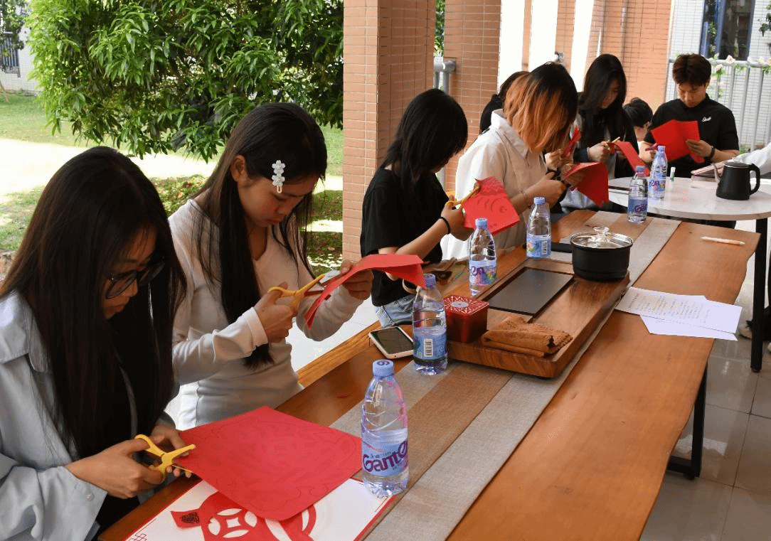 座谈会后,与会师生共同参与非遗剪纸活动。通过自由组队,进行了“福”字与民俗作品的剪纸创作。活动现场欢声笑语,一幅幅精美的剪纸不仅展现了民俗文化魅力,更寄托了各族师生对学院未来发展的美好愿景。作品展示环节,学院领导再次点赞同学们的动手能力:“每一刀刻画都是情感的联结,愿这份协作精神延续到学习与生活中。”