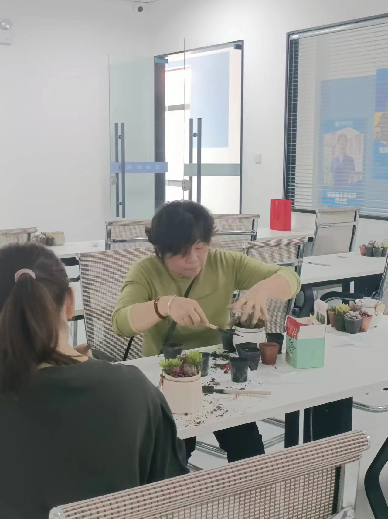 在福商创谷举行了“福商福地‘植’要你”多肉盆栽种植体验活动。在花艺老师的指导下,女教师们认真修剪、构思布局,利用花材和花盆制作出一盆盆错落有致、造型优雅的多肉花艺作品。开展了“青裳丝履亮福商”丝巾搭配教学互动活动,邓靓老师通过演示丝巾的系法,讲解了不同色彩、尺寸、图案的丝巾如何搭配不同款式的服饰,并邀请在场的老师上台,通过情景互动,亲身体验,细致讲解,让大家了解丝巾的妙用小技巧,为女教工的繁忙的工作之余带来了一缕温馨,增添了一份靓丽。