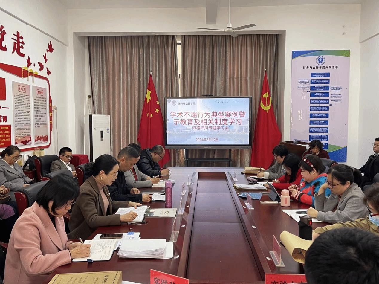 会上,梁经理组织学习了《关于进一步加强科研诚信建设的若干意见》《高等学校预防与处理学术不端行为办法》《科研失信行为调查处理规则》《发表学术论文“五不准”》等有关制度和规范,深入浅出的讲解违反科研诚信的行为类型、违反科研诚信的后果,详细介绍了学术不端的典型案例,强调了科研活动中遵守诚实信用规则的重要性,指出了违反诚信规则的严重后果,警示全体教师务必引以为戒,不越红线,杜绝发生学术不端行为。会上,党委副书记毛茂山也指出学风是高校的立校之本,学术诚信是学术创新的基石,学术不端行为也是师德失范的行为。教育主管部门已三令五申,对学术不端行为“零容忍”。希望全体老师自觉加强师德修养,严格遵守师德规范,严格遵守学术诚信,严以律己,为人师表,坚持以德立身、以德立学、以德施教、以德育德。