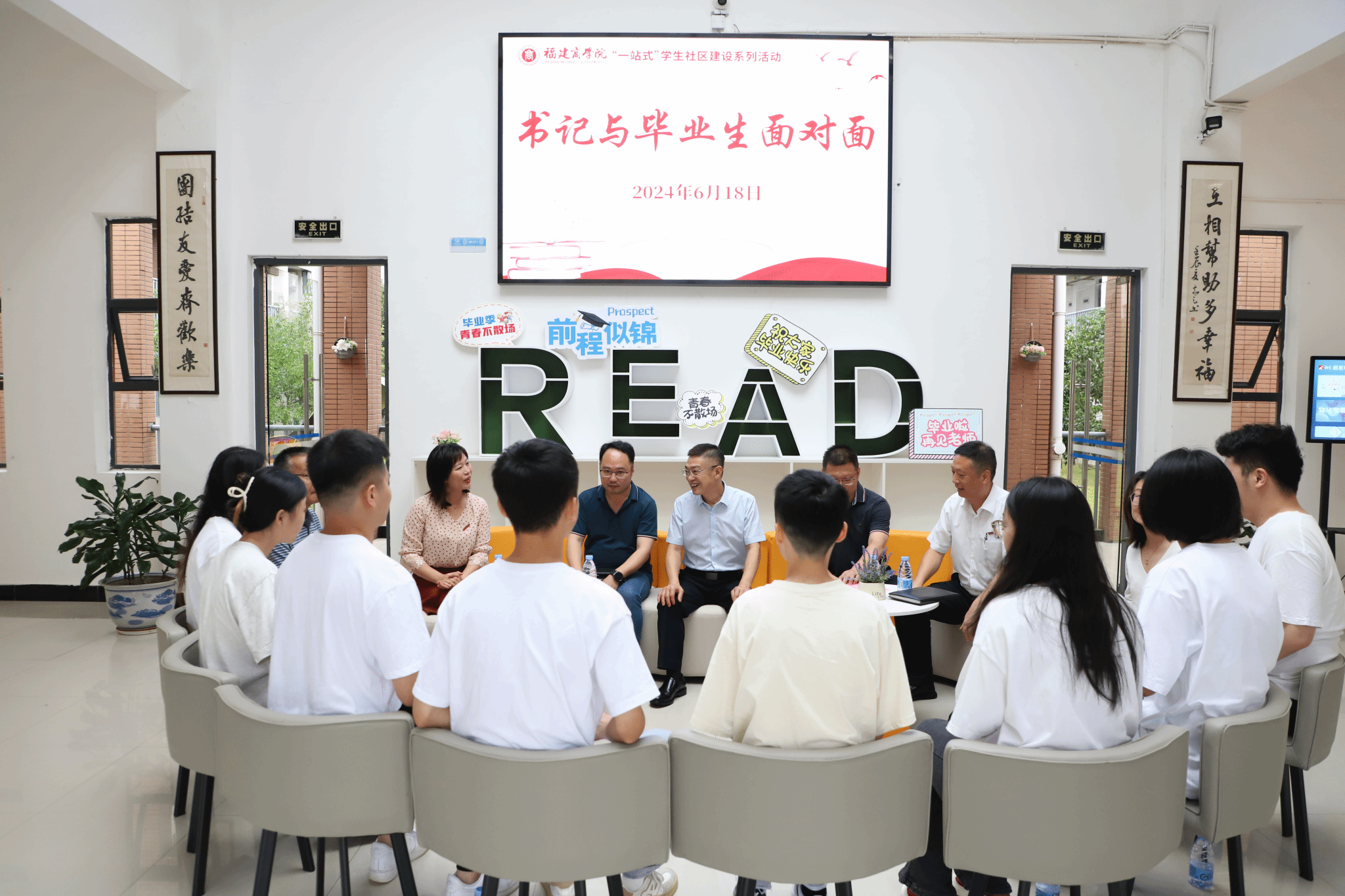 座谈会上,毕业生代表围绕求学成长经历、就业发展规划、爱校荣校之情汇报“青春答卷”,并为学校发展建设建言献策,与会教师对员工需求和意见建议进行详实记录。吴访益对毕业生从“小白”到“大神”的蜕变表示肯定与赞赏,并结合自身求学与工作经历,在做人、做事、做学问上向毕业生提出三点希望。一是永葆福商青年底气。希望同学们践行校训精神,厚植家国情怀,争做有理想、敢担当、能吃苦、肯奋斗的新时代好青年。二是锤炼担当实干品格。希望同学们扎根基层沃土,练就过硬本领,争做想干事、能干事、干成事的奋斗青年。三是传承书香校园文化。希望同学们增进文化涵养,滋养浩然正气,争做爱读书、读好书、善读书的有志青年。