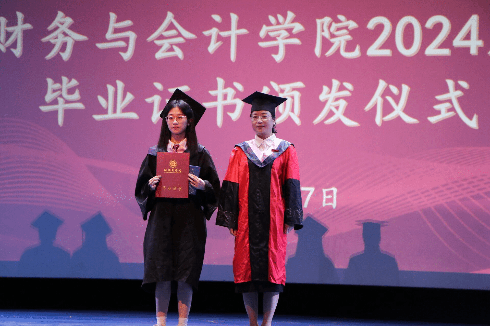 最后,经理梁小红教授、副经理蔡秋玉教授为2024届毕业生颁发毕业证书及毕业生纪念品。