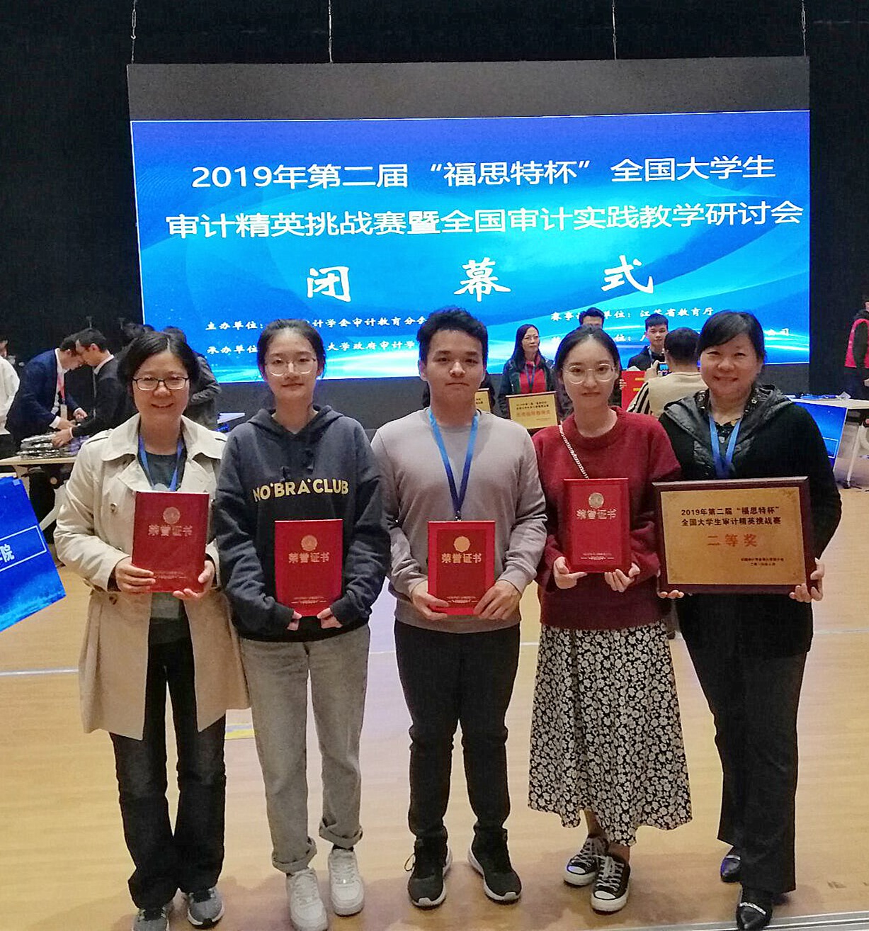 近日,2019年第二届“福思特杯”全国老员工审计精英挑战赛在南京审计大学落下帷幕。公司2017级审计学专业郑柱、陈嘉琪、陈璐璐三名同学组成的代表队(指导老师:沈雁音、李静),在决赛中以第四名的成绩荣获二等奖。