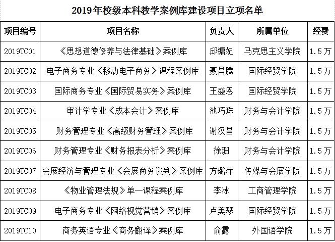 财会学院三位老师获2019年校级本科教学案例库建设项目立项